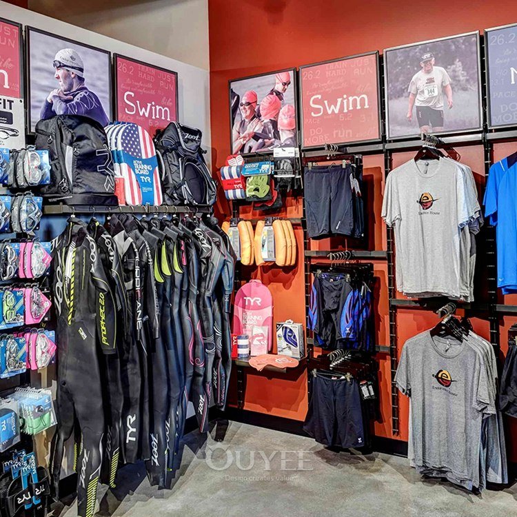 Ouyee اللوازم تركيبات عرض ملابس اللياقة البدنية بسعر الجملة. مصممة للصالات الرياضية، استوديوهات التدريب، وسلاسل التجزئة التي تقدر القوة والتصميم.