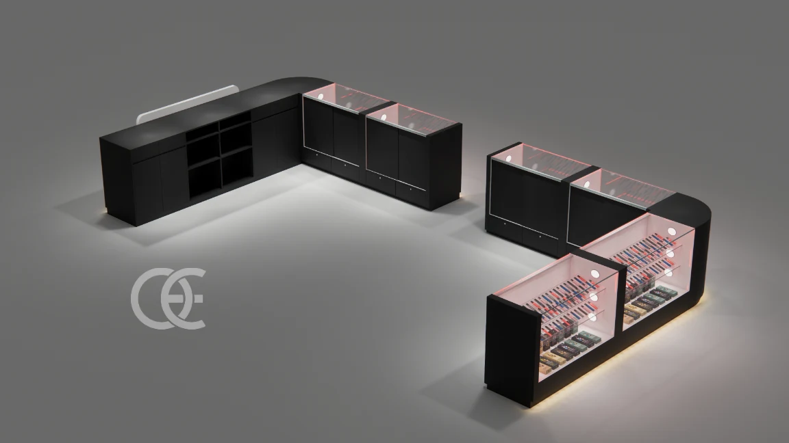 تصنع داخليًا بواسطة Ouyee، يشحن النظام بشكل مسطح مع أجهزة ومكونات مُعلمة وأسلاك مُسبقة التوصيل لتركيب سريع. حدد الأبعاد، التشطيبات، والشعارات المضيئة لتناسب البوتيكات، الأكشاك، أو متاجر الفيب الرئيسية.