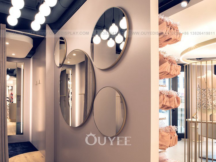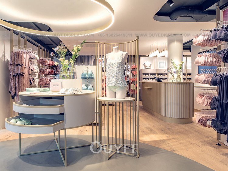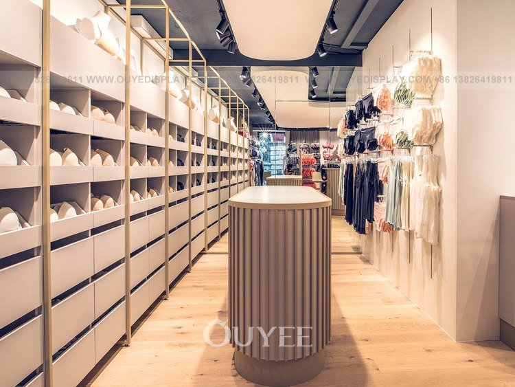 Ouyee spezialisiert auf Innenarchitektur für Unterwäschegeschäfte die Eleganz, Intimität und moderne Einzelhandelsstrategie vereint. Unsere Layouts sind darauf ausgelegt, Lingerie- und Unterwäschekollektionen schön zu präsentieren und gleichzeitig Komfort und Privatsphäre zu verbessern.