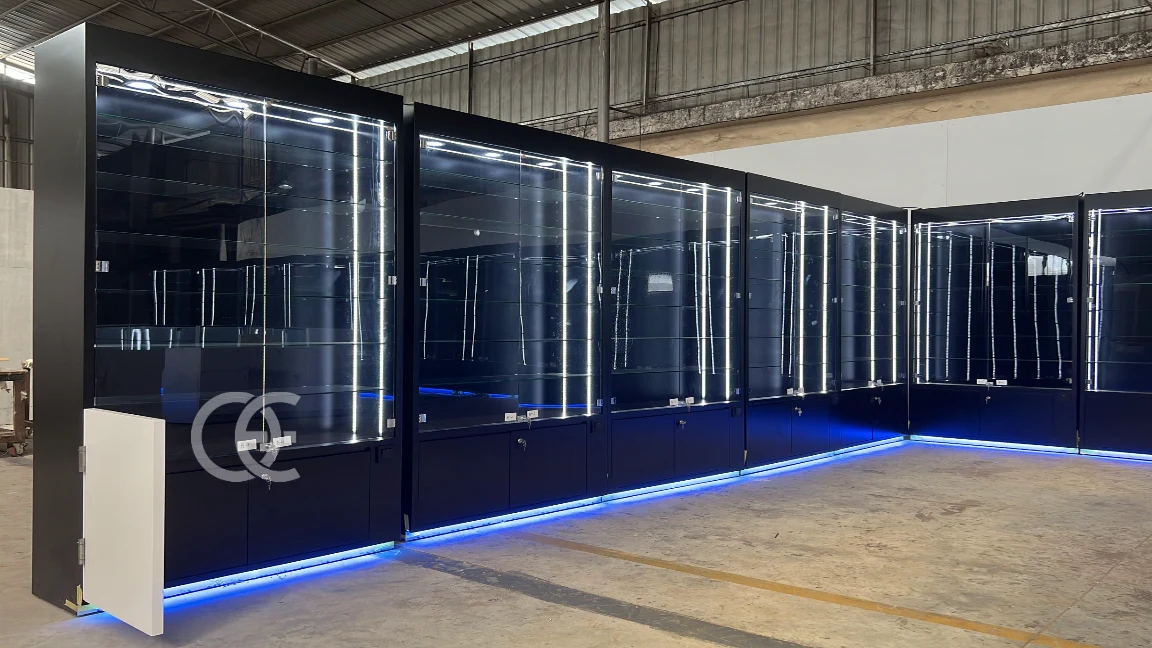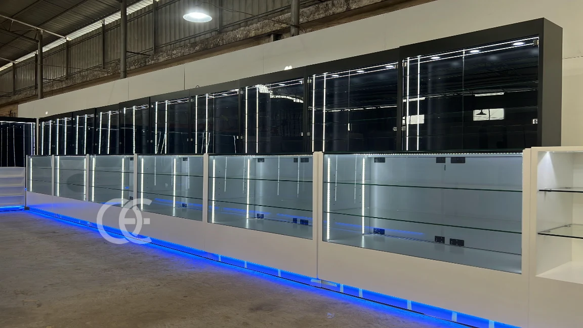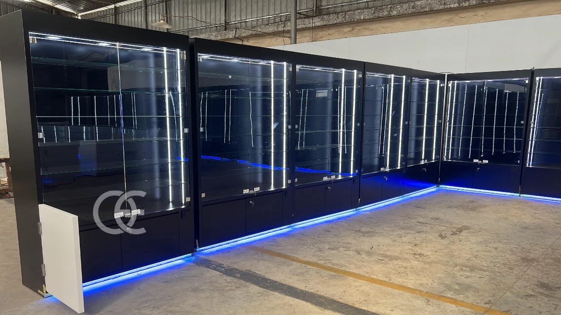 ✅ Gehärtete Glastheken mit LED-Kantenbeleuchtung und blauer Unterbeleuchtung