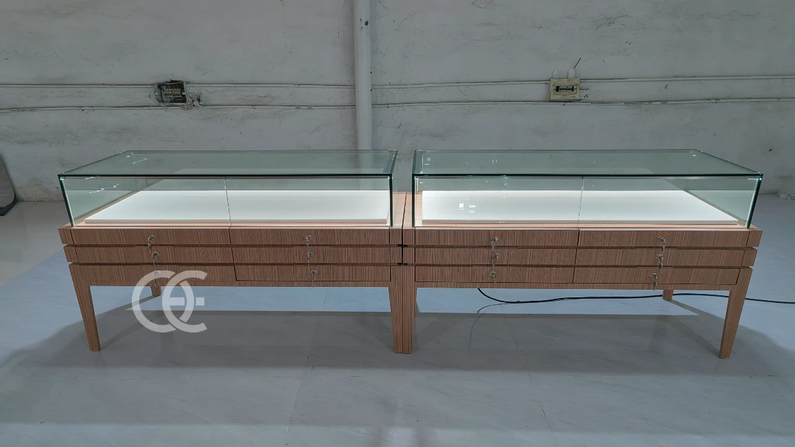 Die Kombination aus hellem Eichenholz und Glas schafft eine luxuriöse, aber natürliche Atmosphäre, perfekt zur Präsentation von hochwertigen Raucherzubehör oder Kräuterprodukten. Jede Einheit ist auf Langlebigkeit, effiziente Präsentation und visuelle Harmonie ausgelegt – unterstützt sowohl den Einzelhandelsverkauf als auch das Kundenerlebnis.
