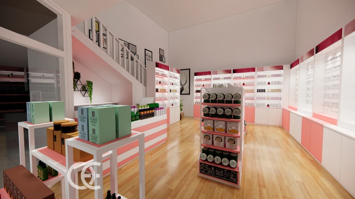 Cosmetic Shop Shelves Design