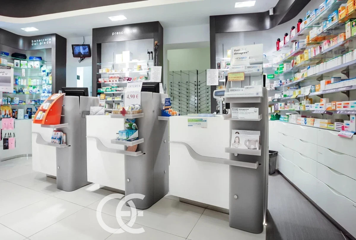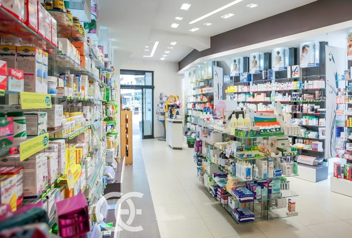Medical Store Backlit Display Reception Desk Design