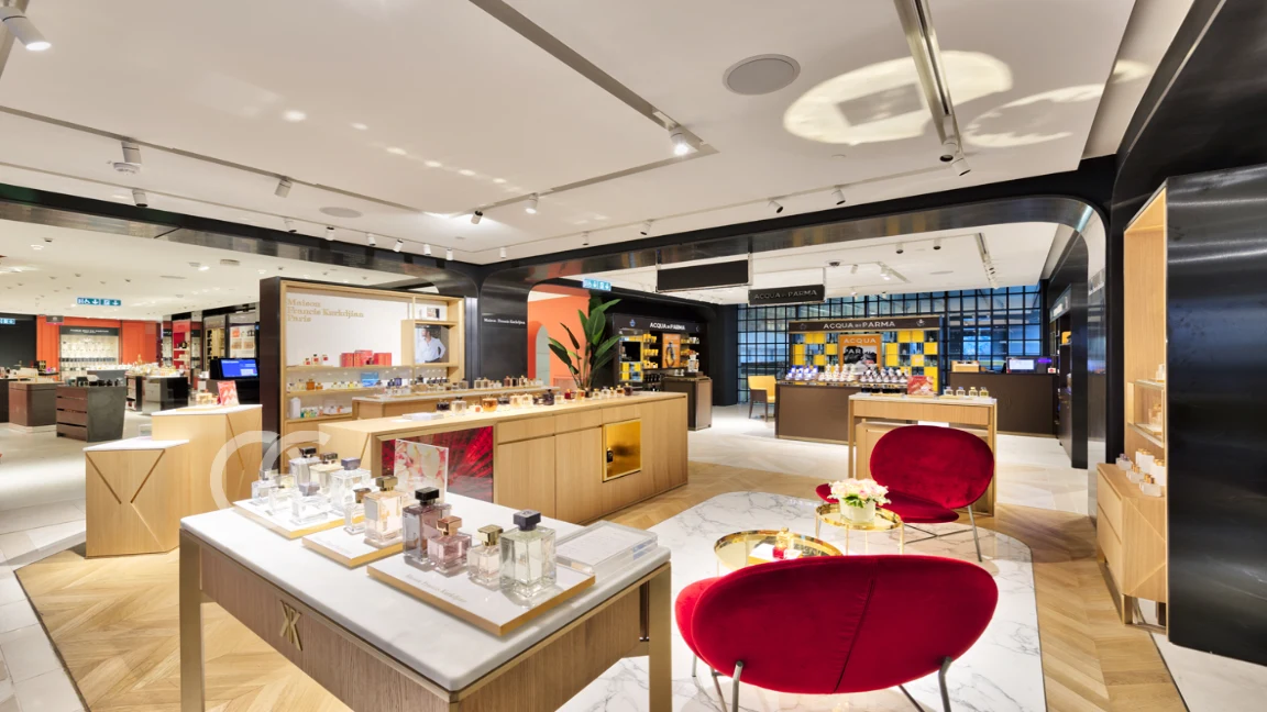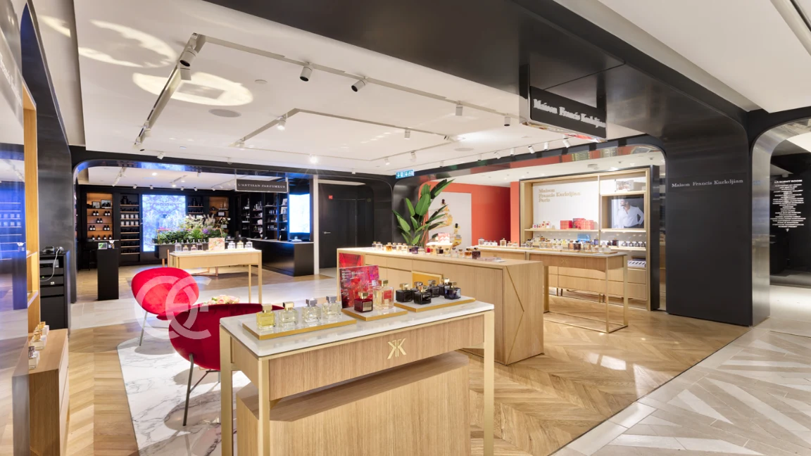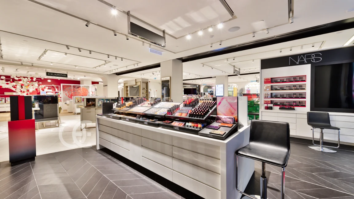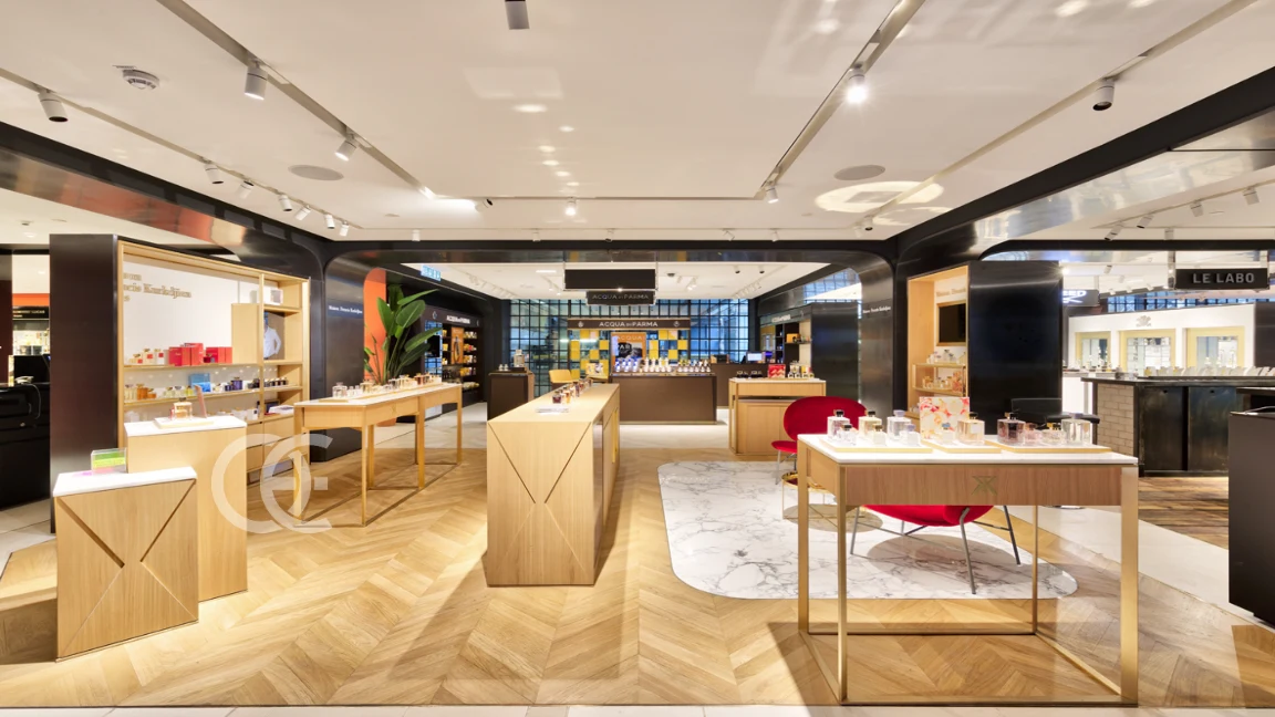 ✅ Backlit slatwall/slotwall bays for fragrance wall displays.