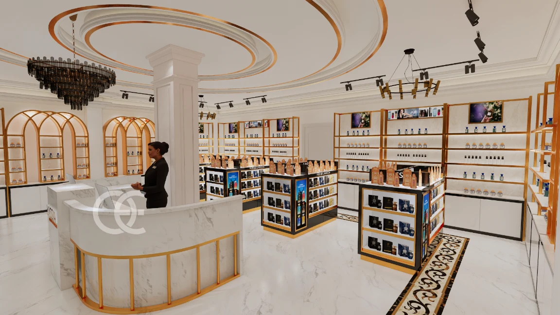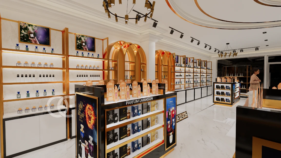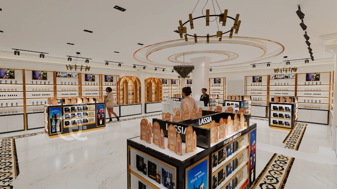 Ouyee plans modern perfume stores with zoning, lighting, and cohesive fixtures. 3D visuals and shop drawings turn concepts into buildable solutions.
