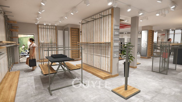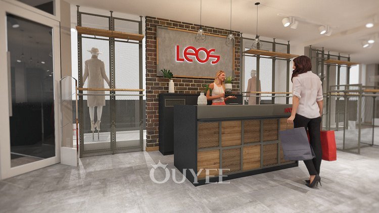 Ouyee デザイン 高級ブティック展示ラック 小売環境をエレガントなファッション空間に変える。.