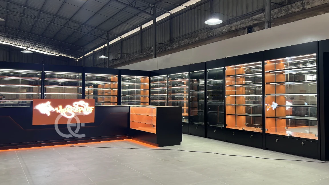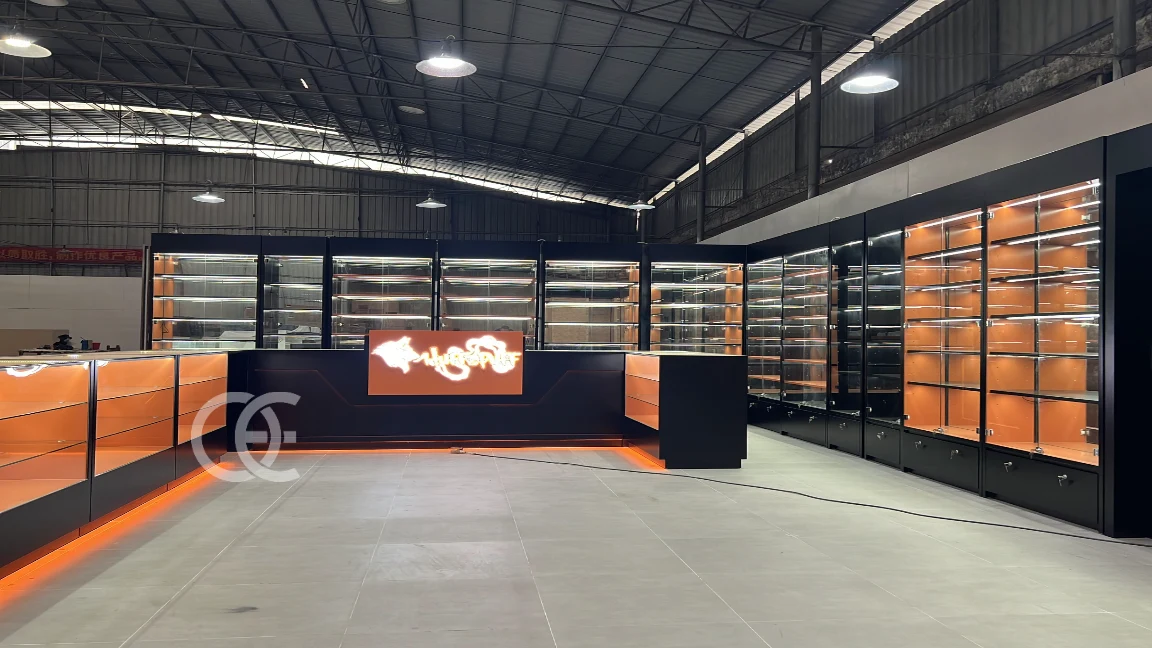 The Ouyee hookah shop design blends display precision with brand storytelling — creating a refined environment that enhances both the visual appeal and the flow of customer interaction. Ideal for luxury shisha lounges, tobacco boutiques, or vape hybrid stores seeking a unified brand presence.