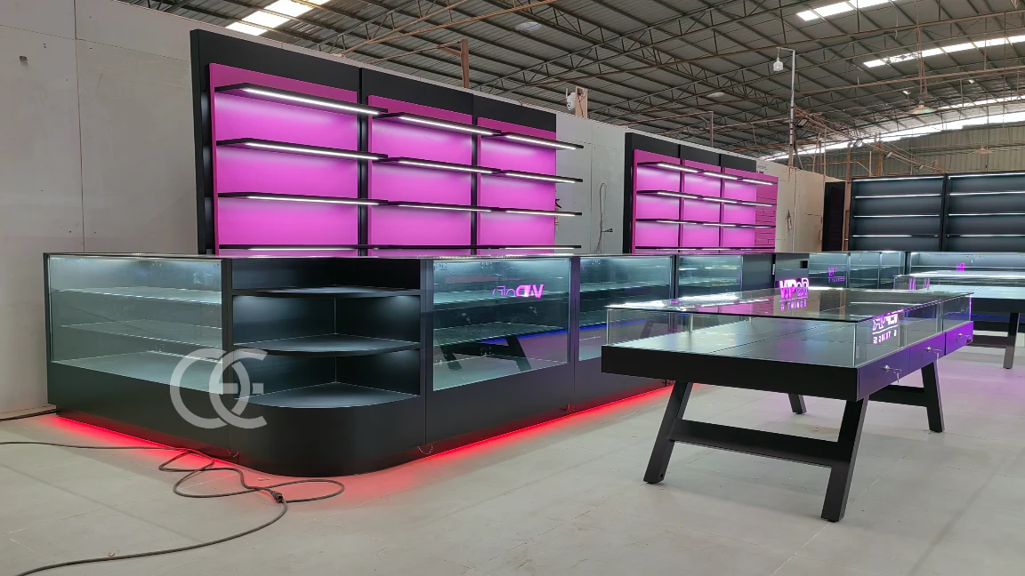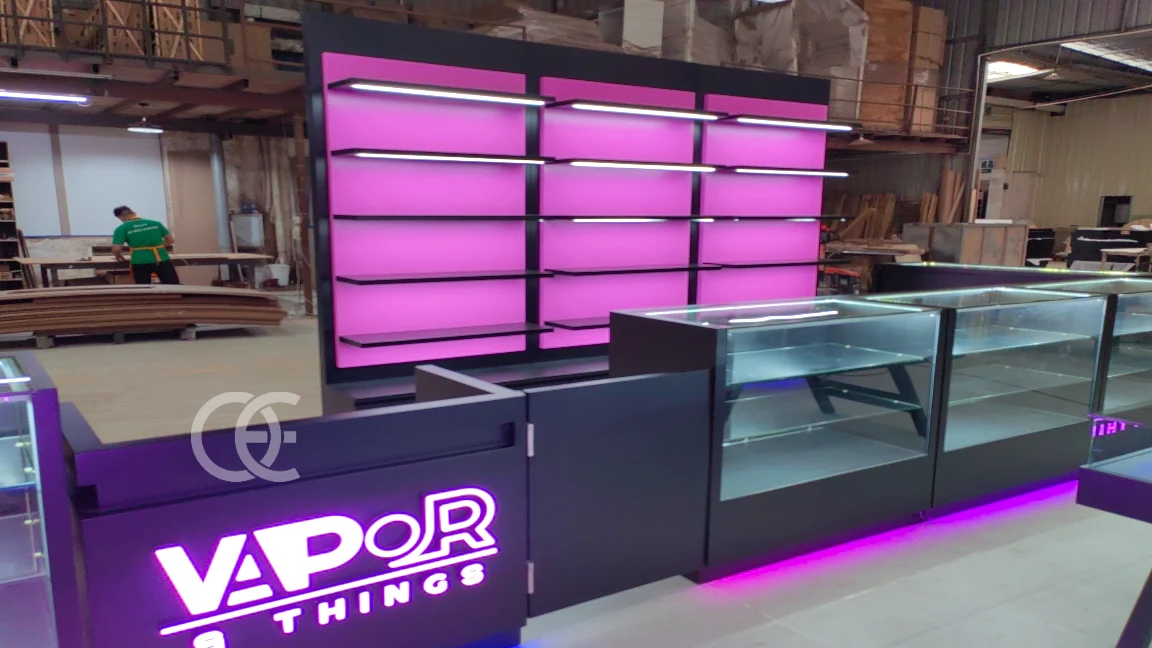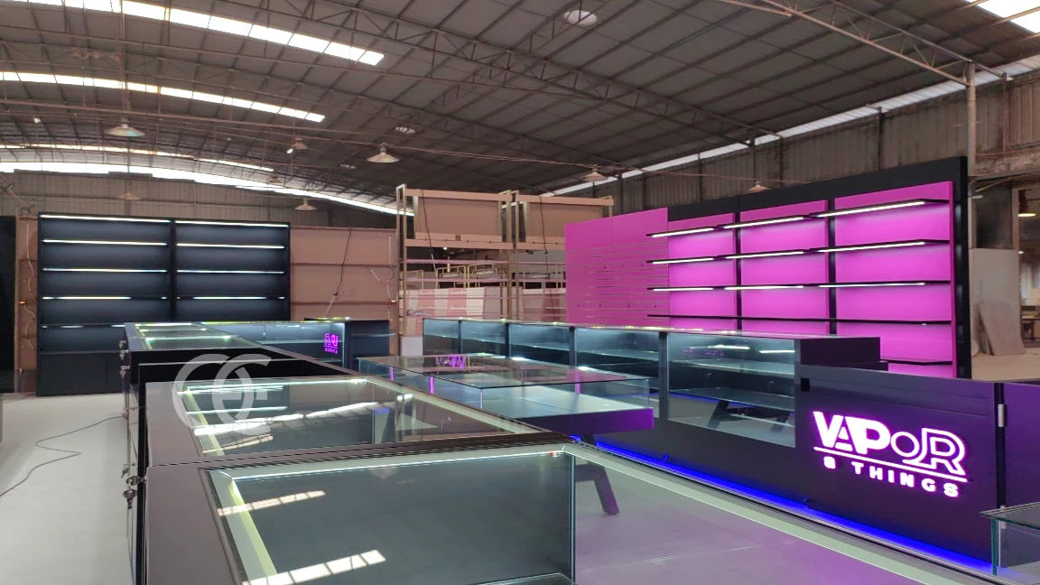With 20+ years of experience in retail fixture manufacturing, Ouyee delivers tailored solutions for vapor stores worldwide — including 3D design, full customization, production, and export logistics.