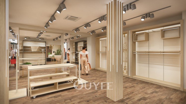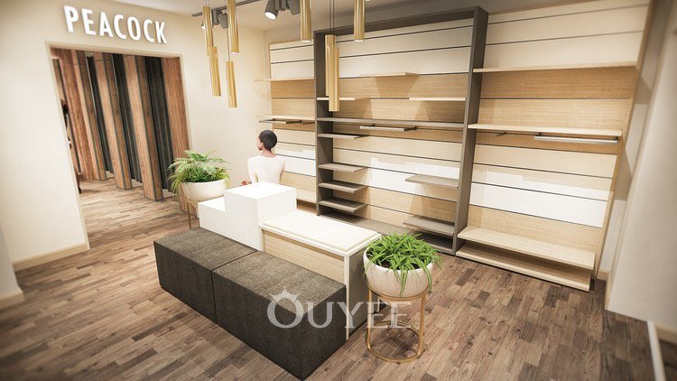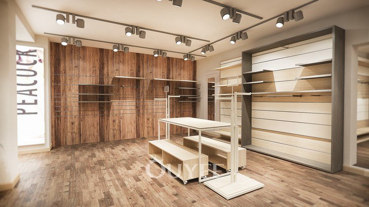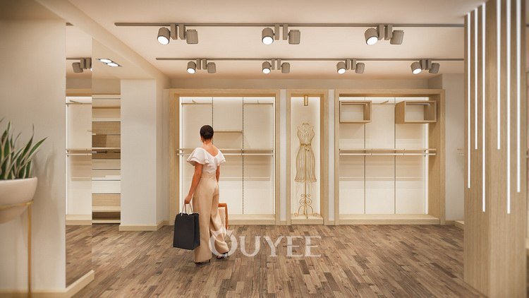 Ouyee предложения интерьер выставочного зала женской одежды услуги с акцентом на элегантность и презентацию продукции. Каждый дизайн сочетает в себе изысканность, комфорт и эффективное использование пространства.